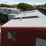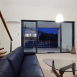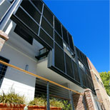 Individual PV Systems – every apartment has the infrastructure (rails to roof and conduit from roof to the location of the inverter, and cabling back to the apartment sub-board) included that allows for the installation of a 1.08kW photo-voltaic solar array. All apartments have bi-directional meters installed. Currently 26 of the 35 apartments have installed a system. If the office and café were also to install their respective 5kW systems on top of the 10kW communal system there would be a total capacity of 55kW being generated by the complex.